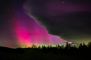 Is the Aurora or the big cloud bank winning in the sky? No matter, it's a surreal scene over eastern Oregon